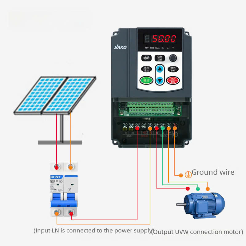 - Bộ điều khiển máy bơm nước năng lượng mặt trời để đáp ứng nhu cầu của các ứng dụng bơm khác nhau, bộ biến tần máy bơm nước năng lượng mặt trời Sako áp dụng công nghệ theo dõi điểm công suất cực đại và công nghệ truyền động động cơ đã được chứng minh để tối đa hóa công suất đầu ra của mô-đun năng lượng mặt trời. Hỗ trợ đầu vào DC và AC.