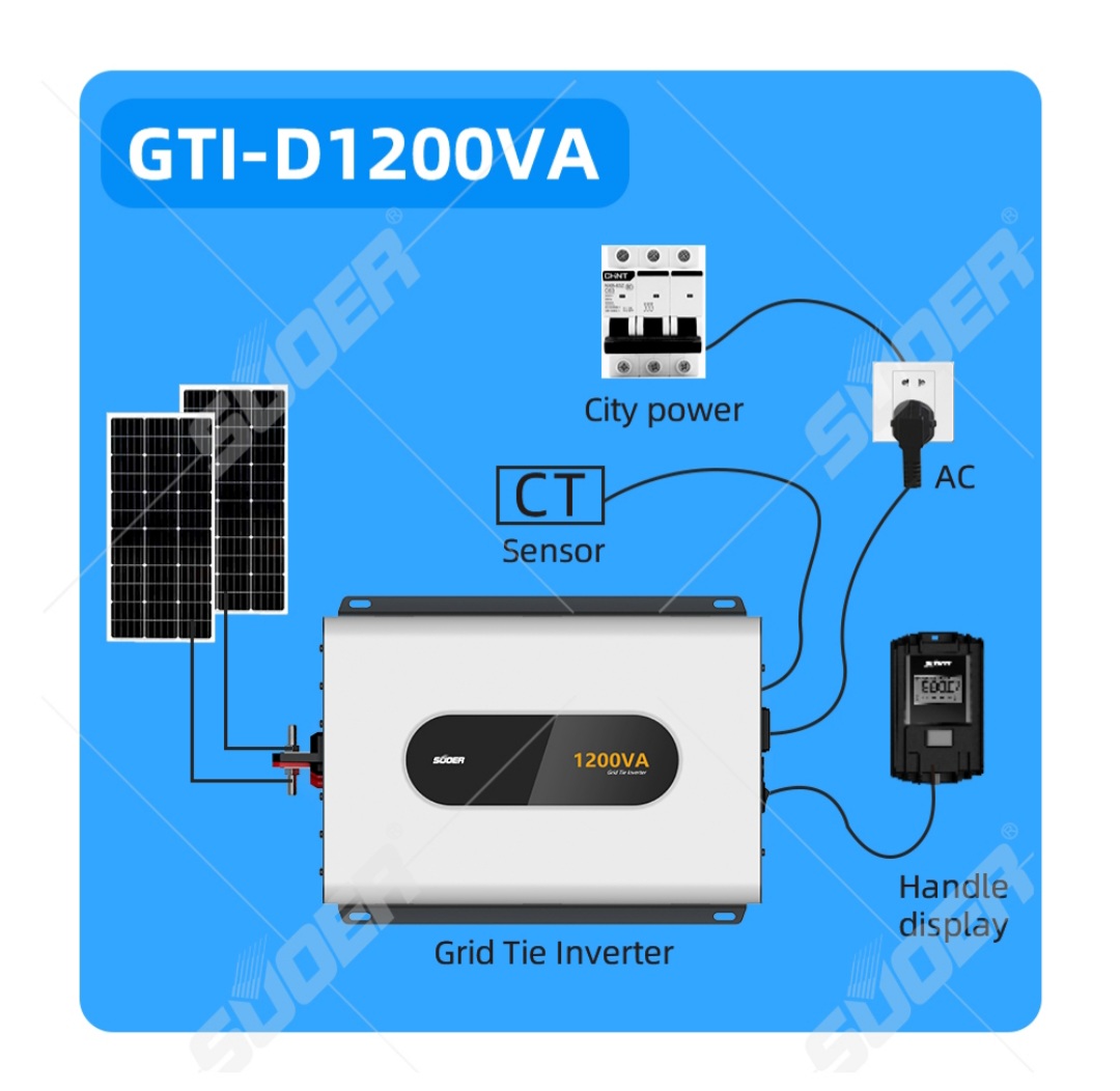 Biến Tần Hòa Lưới Bám Tải Suoer 1200W 30V-45V Có Đồng Hồ Hiển Thị, GTI-D1200VA