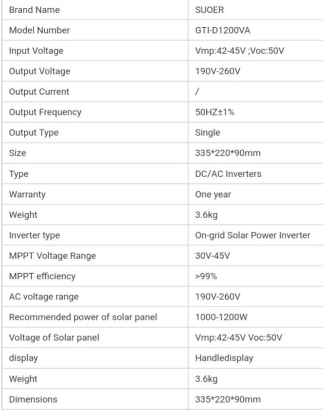 Biến Tần Hòa Lưới Bám Tải Suoer 1200W 30V-45V Có Đồng Hồ Hiển Thị Thương hiệu SUOERXuất xứ Trung QuốcBảo hành 12 tháng