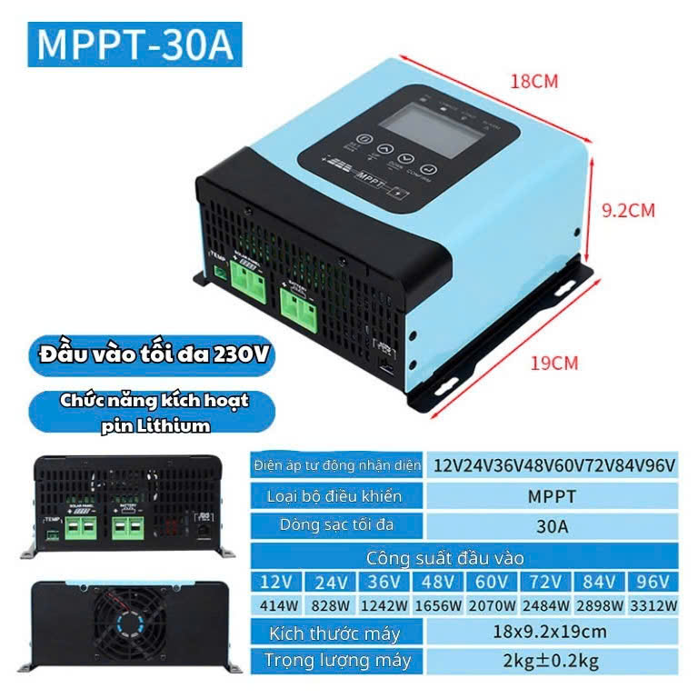 Bộ điều khiển sạc năng lượng mặt trời MPPT tự động nhận dạng 12V /24V /36V /48V /60V /72V /84V/ 96V