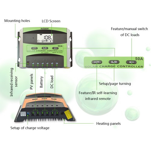 12.Bên trong sạc bảo vệ giới hạn dòng điện, mà không phải lo lắng về các tấm pin mặt trời sẽ tăng công suất quá nhiều và hệ thống pin.