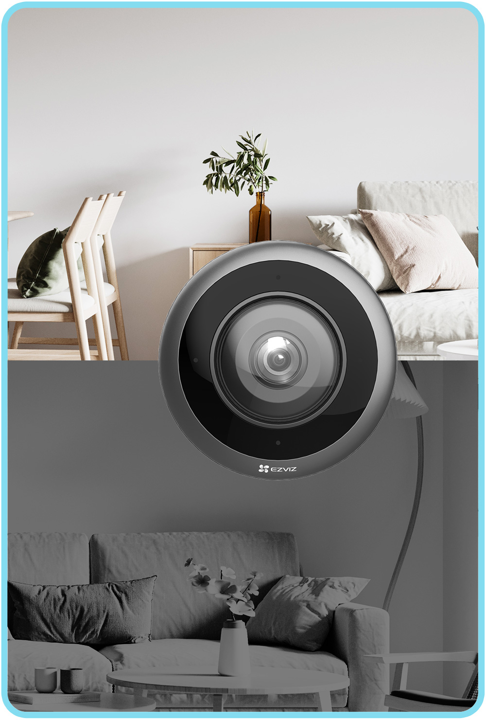 Camera mắt cá EZVIZ 360 độ ghi hình toàn cảnh, loại bỏ điểm mù. Công nghệ khử cong hình ảnh mang lại video chân thực, không méo mó. Bạn có thể quan sát mọi góc chỉ với một thiết bị. Tính năng này lý tưởng cho không gian rộng như phòng khách, văn phòng.