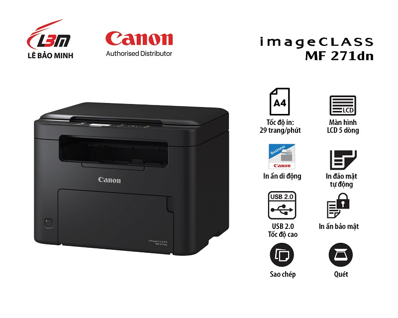 Tinh gọn các tác vụ văn phòng và tạo ra các bản in chất lượng cao với máy in laser đa chức năng đáng tin cậy của Canon. Cùng với bảng điều khiển LCD trực quan, người dùng có thể trải nghiệm thao tác một các dễ dàng và tiện lợi