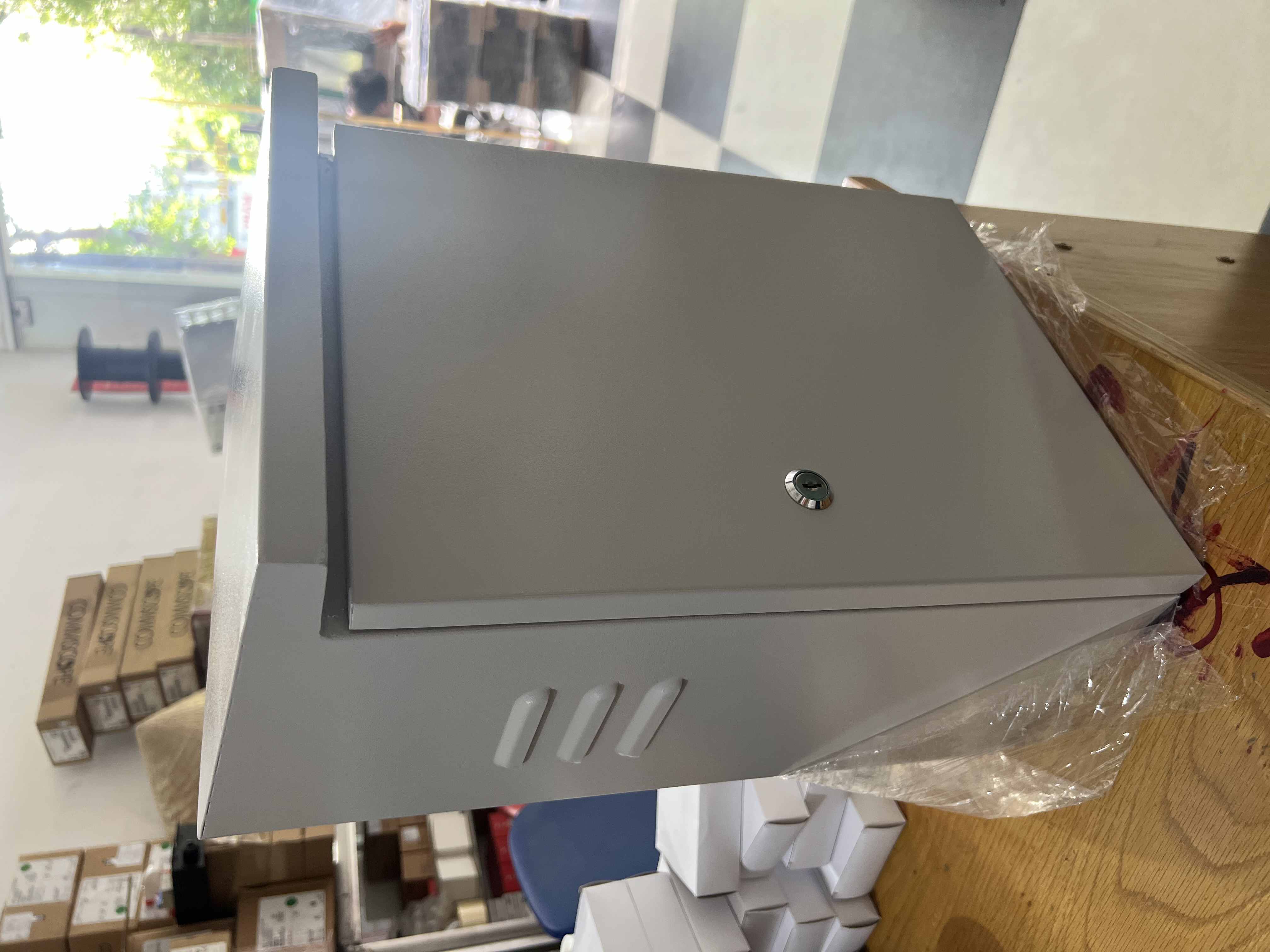 – Kích thước chiều cao: 400mm.– Kích thước chiều rộng: 300mm.– Kích thước chiều sâu: 150mm.– Độ dày vật liệu: 1.0mm – 1.2mm– Màu sắc: Vỏ tủ sơn tĩnh điện màu ghi sáng.